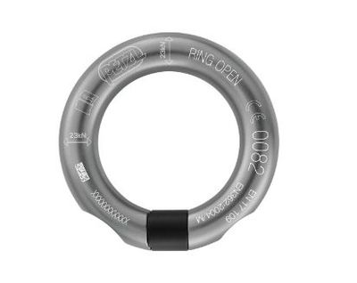 Multidirectional gated ring. The RING OPEN gated ring is designed for semi-permanent connection of equipment. The round shape allows it to function optimally in all directions. It has a large opening that allows installation of ropes with sewn terminations.