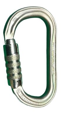 The PETZL Oxan Oval is a high strength steel triple-lock carabiner. The symmetrical shape reduces the tendency for the carabiner to shift under load. The PETZL Oxan Oval is suitable for use with pulleys, rope grabs or other uses where even loading is desirable. The 22 mm gate opening and rating of 38kN makes it ideal for heavy-duty applications and for connection to structural anchors and lifelines. Manufactured from high strength carbon steel H cross-section protects markings from abrasion Keylock gate design reduces snagging Visual gate unlocked warning indicator Gate opening: 20mm Rating Major Axis: 38kN Rating Minor Axis: 16kN Rating Gate Open: 15kN