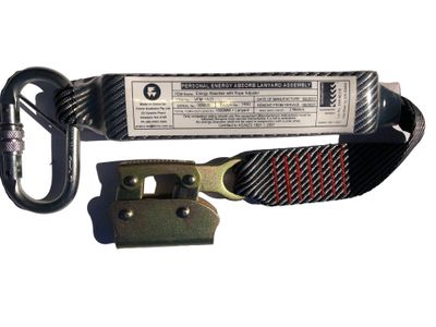 In the event of a fall, energy absorbers deploy an additional length of webbing that is designed to absorb the force or shock load experienced.