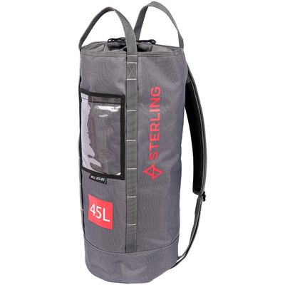 Sterling Rope Bag is a heavy duty bag with a working load limit that makes them suitable for all rope access jobs. Made with abrasion resistant 1600D poly, reinforced carry straps and an internal liner, these bags feature comfortable shoulder straps, a WLL of 90 lbs, a clear document pocket, an information patch on bottom, a rope tie off inside as well as a drainage hole in the bottom of the bag. The bag has a clearly marked working load limit of 40,8 kg on the outside. It features a free-standing design for easy rope flaking and comes with external daisy chains to carry additional gear. You'll find a document pocket and nameplate for quick identification, whether the bag is standing upright or lying on its side.