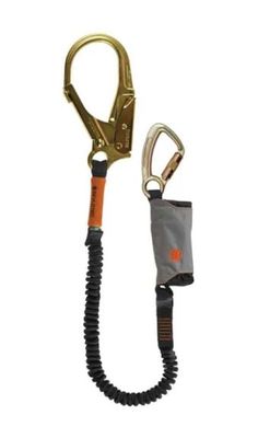 SKYSAFE PRO 1.8 metre shock absorbing lanyard 22mm opening Triple Action Karabiner one end, 65mm opening Steel Scaff hook the other end.