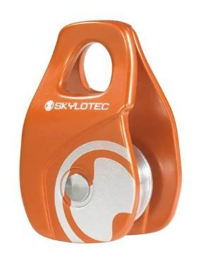 Ball bearing mounted aluminum rope pulley. Ideal for negotiating rope bridges or redirecting ropes in a pulley system. 22 kN breaking load and weighing only 114 grams.