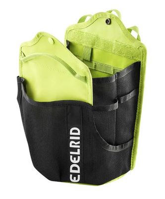 Compatible with small gear loops on Edelrid Vector and Vertic Harnesses 2L capacity VCR closure allows quick access Additional push button closure for extra security