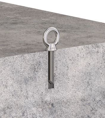 Kattsafe 316 stainless steel Eyebolt: M16 x 100mm Eyelet: 35mm Epoxy adhesive fix required (not supplied) Drilled hole diameter: 18mm x 110mm deep Minimum concrete thickness: 150mm Minimum concrete edge distance: 200mm Minimum anchor spacing: 200mm Minimum concrete strength: 20mpa Concrete structure integrity, suitability and anchor location to be assessed and determined by a competent person before installation. Recommended for single person use - 15kN rated Rope access use: 15kN Fall arrest use: 15kN - Single person use Anchor is to be used in a shear load direction only (pulled at an angle not exceeding 20ΓΈ to the installed surface).