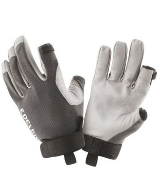 - Robust leather on the palms and the underside of the fingers. - Pull tab on the wrist for easy on/offs and to hang them up by a karabiner. - Back of hand and fingers made of elastic 4-way stretch material. - Half-length fingers on thumb and forefinger. - Pull-off loop on forefinger. - Elasticated wristband with Velcro strap.