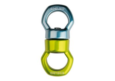 Edelrid Conecto Opening Swivel. Both sides of the swivel can be opened allowing the swivel to be connected directly to a device or webbing product reducing the amount of room taken up with additional karabiners and connectors. 15kN, Overall length 100mm