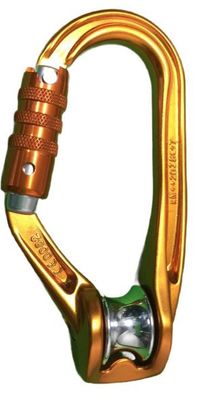 Petzl ROLLCLIP is a pulley-carabiner. TRIACT-LOCK system (manual SCREW-LOCK system available also) Specifications Material(s): aluminum Min. rope diameter: 7 mm Max. rope diameter: 13 mm Sheave diameter: 18 mm Maximum working load: 2 x 2 = 4 kN Efficiency: 85 % Major axis strength: 20 kN Minor axis strength: 8 kN Open gate strength: 7 kN